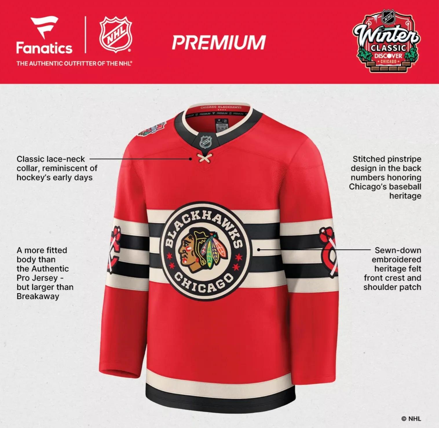 Men's Chicago Blackhawks Connor Bedard Fanatics Red 2025 NHL Winter Classic Premium Player Jersey