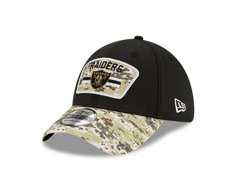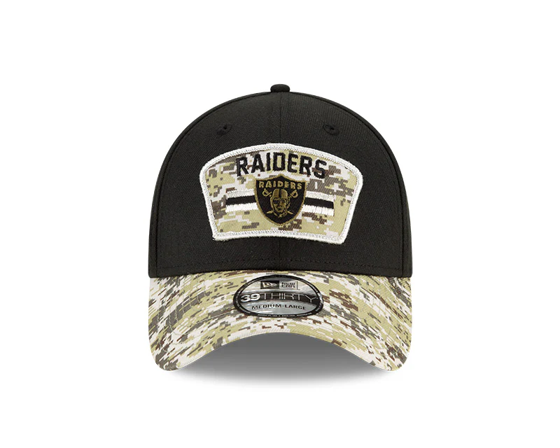 Men's Las Vegas Raiders New Era Black 2021 Salute to Service Primary Logo 39THIRTY Flex Hat