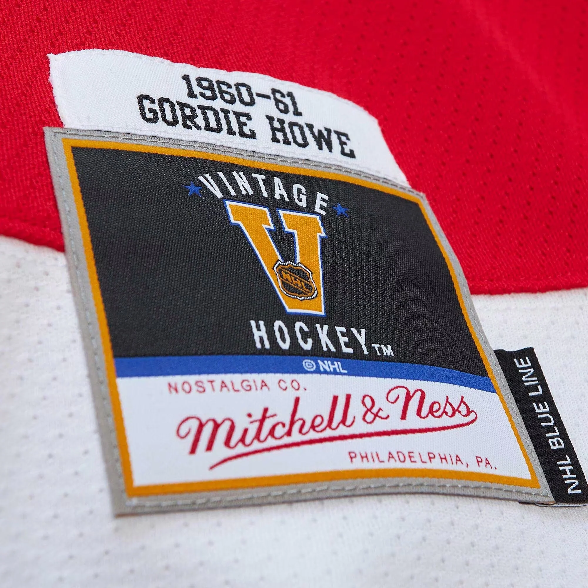 Men's Detroit Red Wings Gordie Howe Mitchell & Ness Red 1960/61 Captain Patch Blue Line Player Jersey
