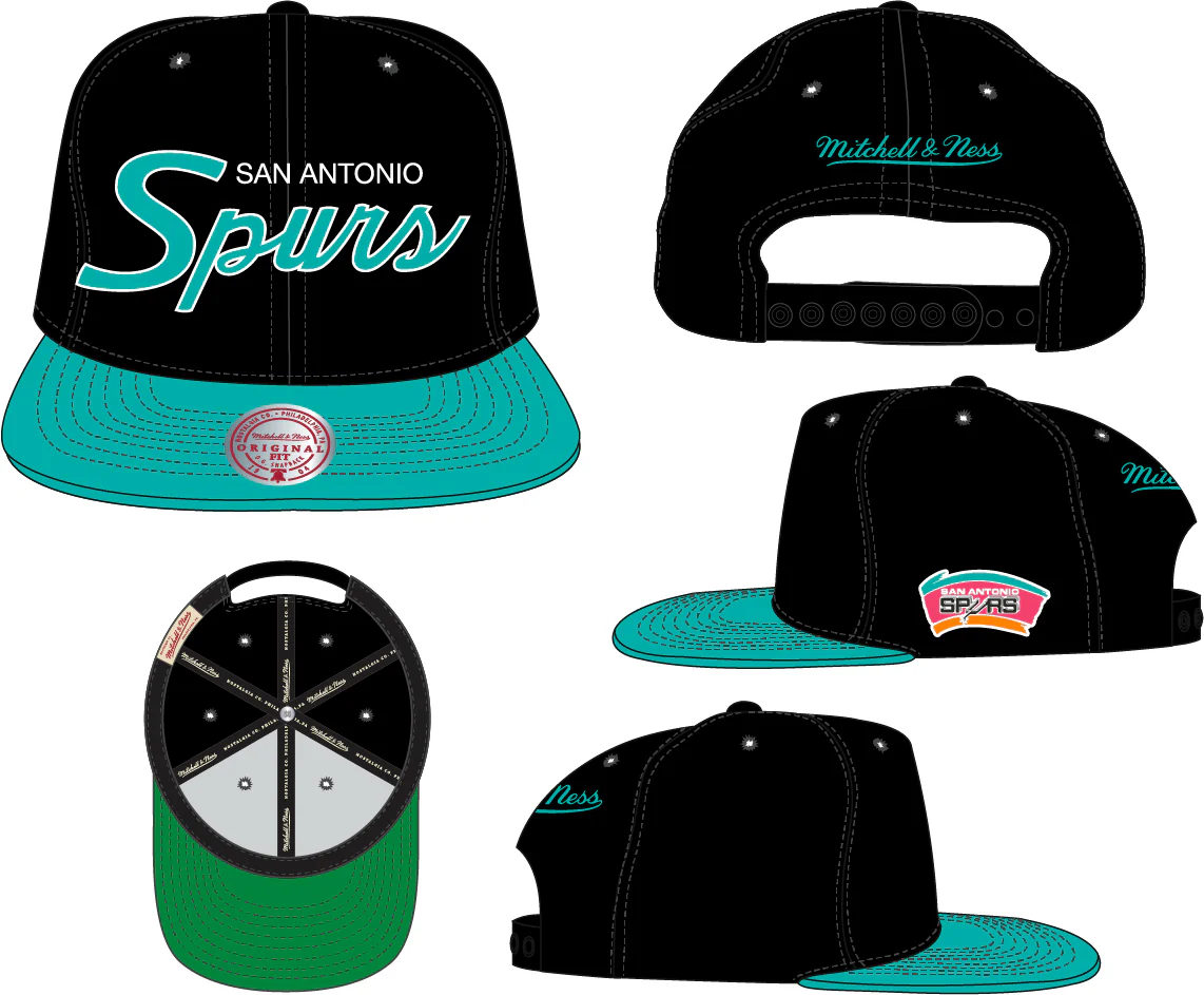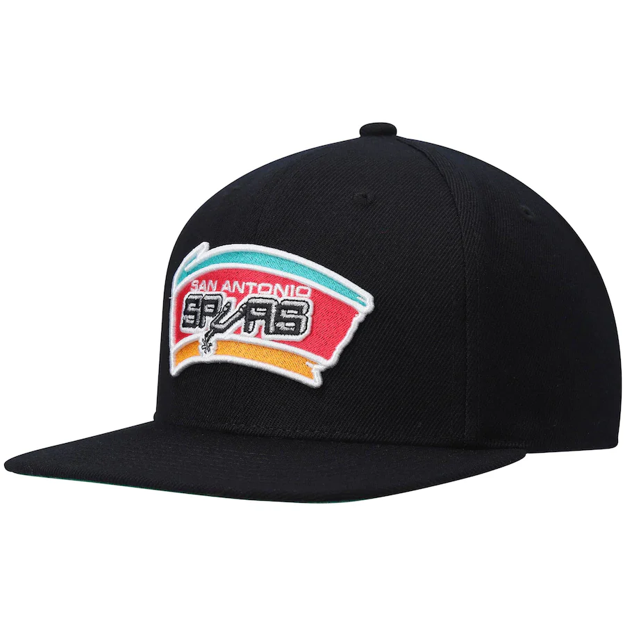 San Antonio Spurs HWC Team Script 2.0 Black Mitchell & Ness Snapback Hat