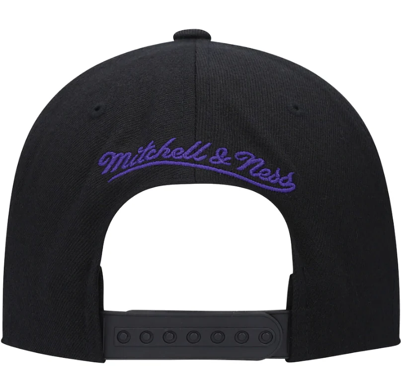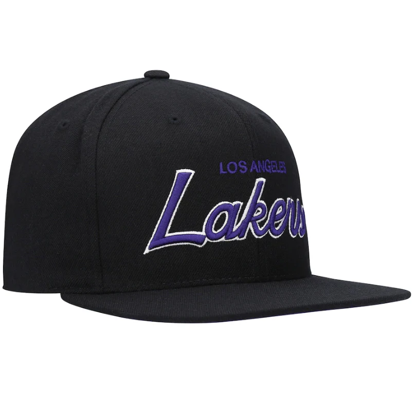 Mens NBA Los Angeles Lakers Black Foundation Script Snapback Hat By Mitchell And Ness