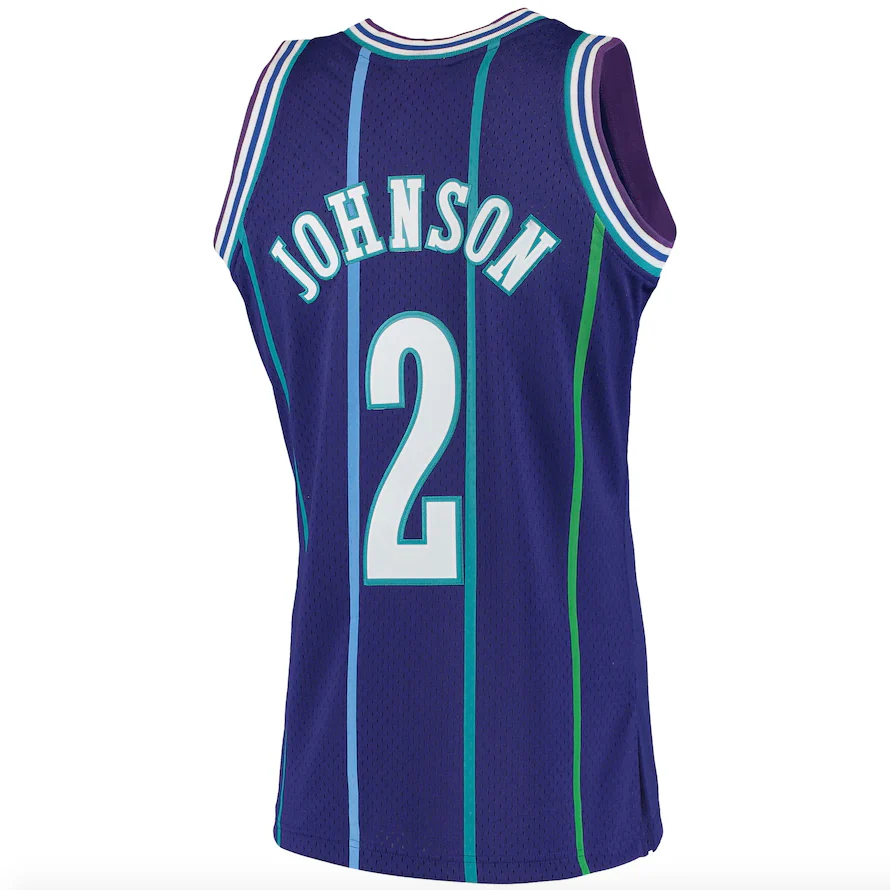 Men’s Larry Johnson Charlotte Hornets 1994-95 Purple Swingman Replica Jersey By Mitchell & Ness