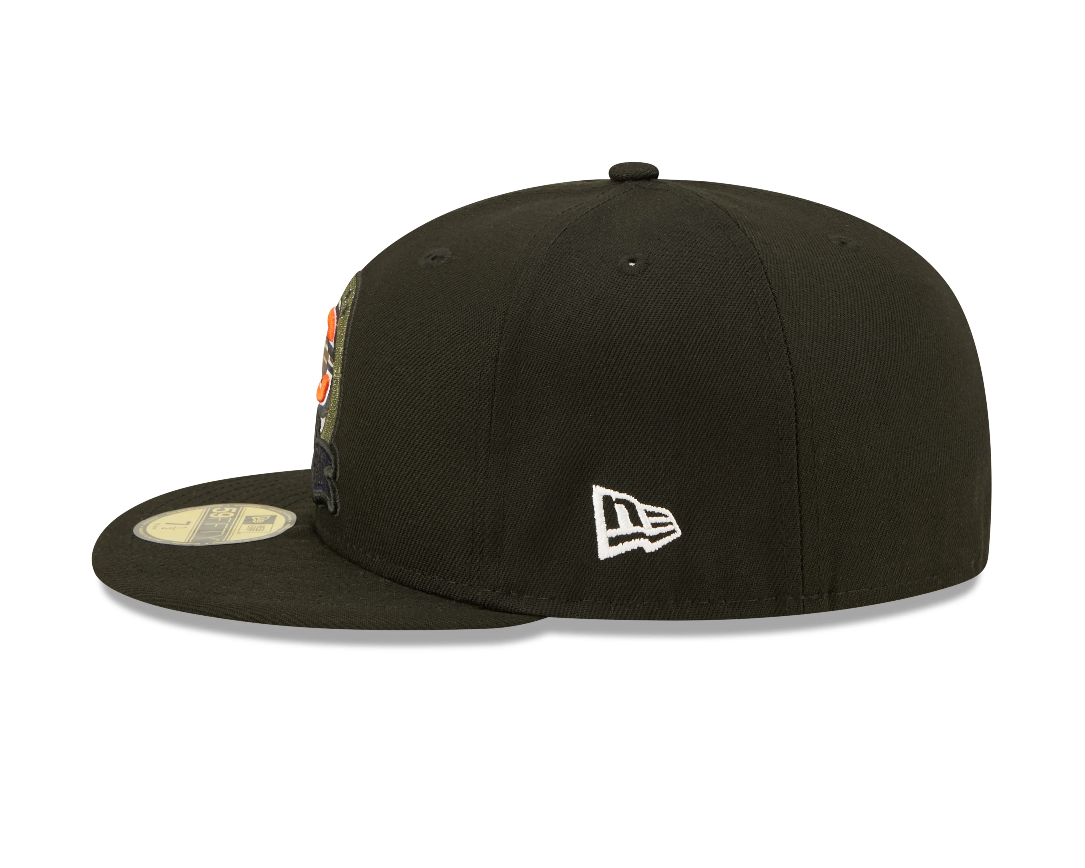 Chicago Bears 2022 Sideline Salute To Service Historic Logo Black New Era 59FIFTY Fitted Hat
