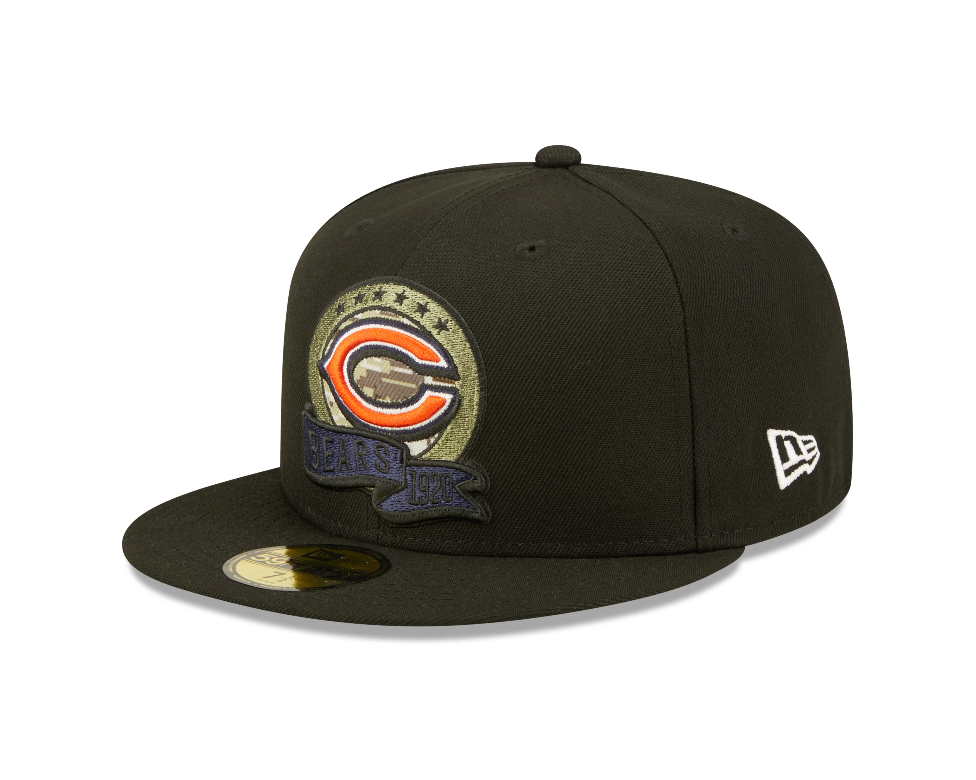 Chicago Bears 2022 Sideline Salute To Service Primary Logo Black New Era 59FIFTY Fitted Hat