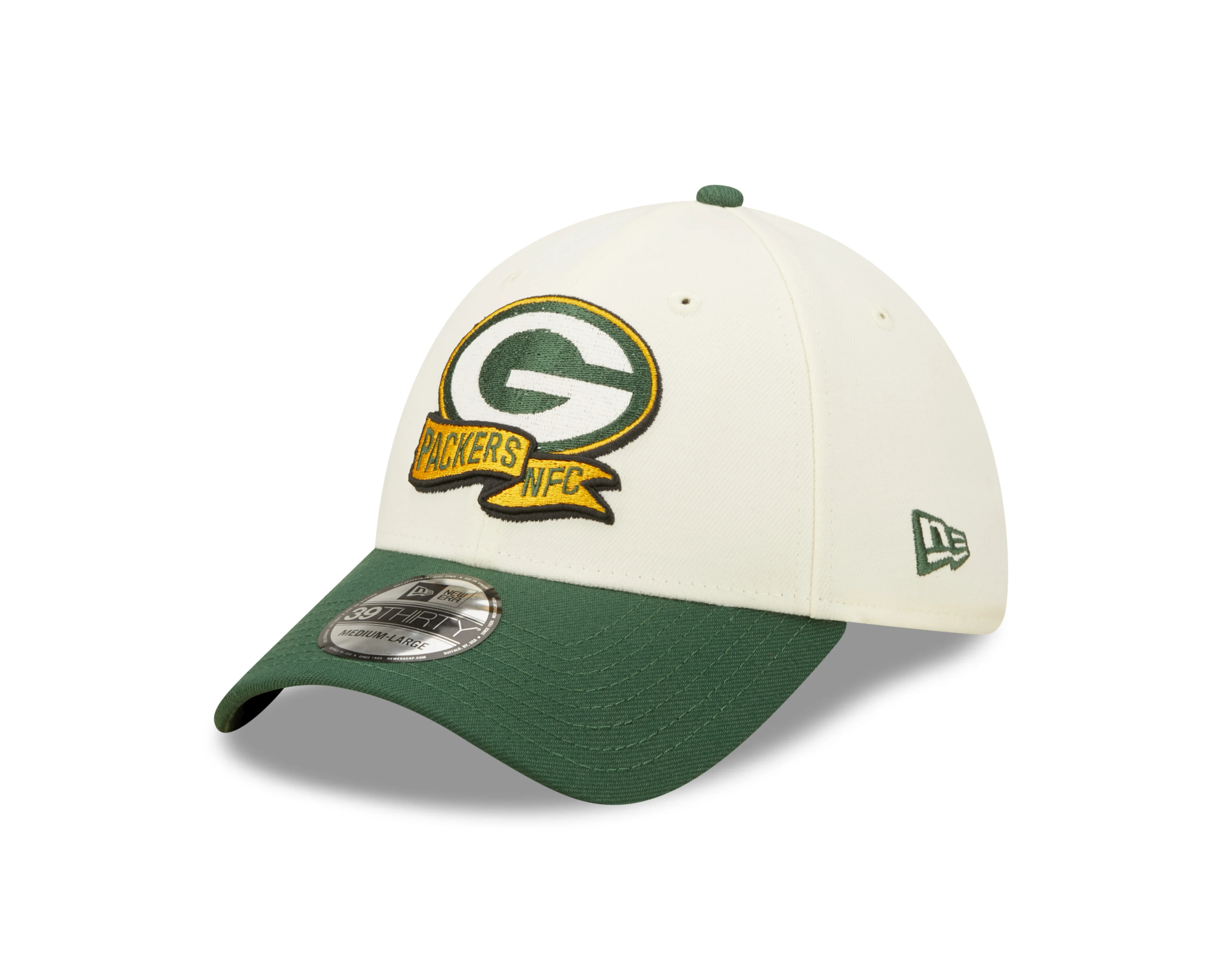 Men's Green Bay Packers New Era Cream/Green 2022 Sideline 39THIRTY Flex Hat
