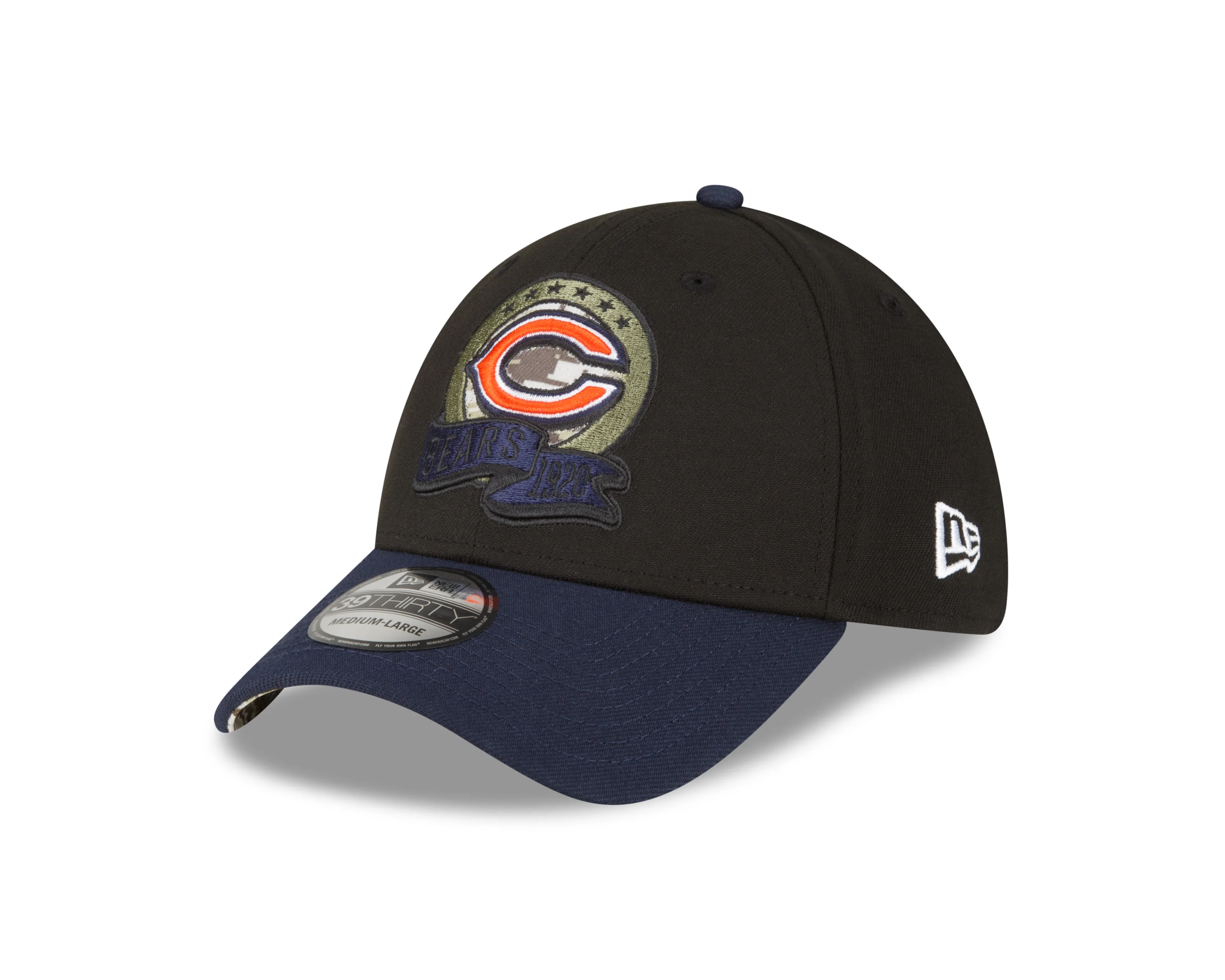 Men's Chicago Bears New Era Black 2022 Salute to Service Historic Logo 39THIRTY Flex Hat