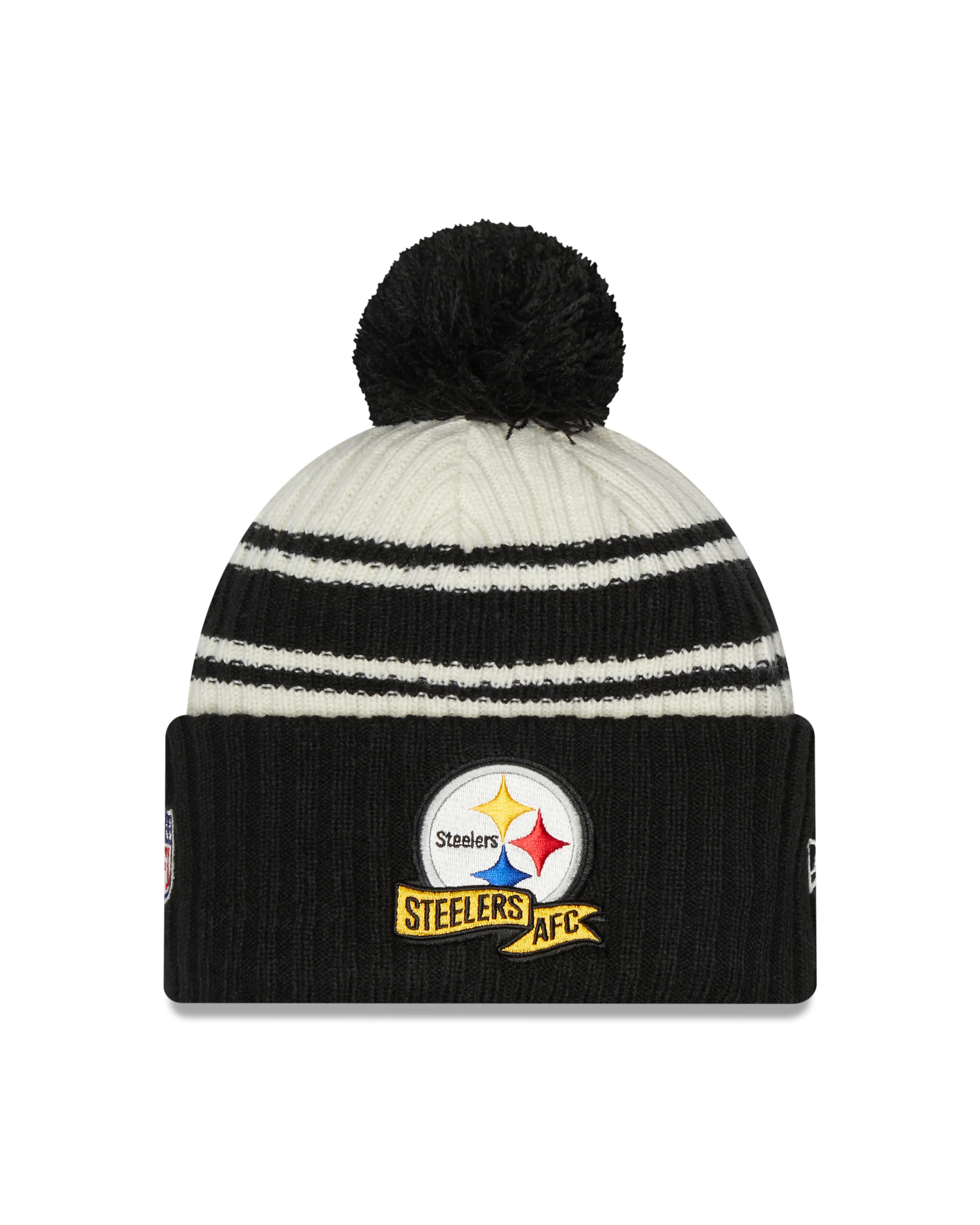 Pittsburgh Steelers New Era Black 2022 NFL Sideline Sport Pom Cuffed Knit Hat